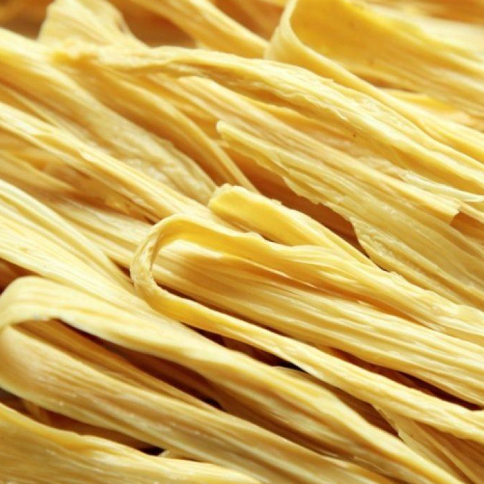 腐竹又稱腐皮,是很受歡迎的一種傳統(tǒng)食品,也是國內(nèi)常見的食物原料,具有濃郁的豆香味,同時還有著其他豆制品所不能及的不同口感。國內(nèi)腐竹生產(chǎn)加工時間悠久,主要以傳統(tǒng)手工工藝為主,包括選豆、脫殼、去皮、泡豆、磨漿、甩漿、煮漿、過濾分離、提取、烘干等多道工序。其生產(chǎn)的腐竹韌性好,吸水膨脹后不粘糊、不含任何添加劑,具有豆制品特殊的清香風味。