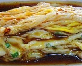 而我更喜歡欣賞的是腸粉出鍋的那一剎——在騰騰水霧中,那一塊布被拉起來,粉案上便變摩術(shù)般地變出一塊白玉般的“布”,這熱辣辣的“布”被快手地卷起來,疊到碟子上,如一卷卷袖珍的白綾。如果是牛肉腸,豬肉腸,你還隱隱的見到白綾上的“花紋”。每當(dāng)此刻,我都對拉腸粉的師傅徒生敬意。此等對白米是何等的深情,好比年復(fù)一年日復(fù)一日地站在熊熊烈火前“織布”,一生織出多少萬丈“白綾”,織出廣府飲食文化燦爛的一章。毫不否認(rèn),將大米化作美味美食,離不開這個拉腸粉機(jī)器啦!