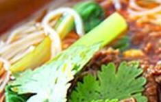 4. 在米粉上澆上牛肉湯,即可食用。