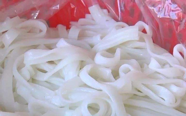 與尋常米粉不同,這種河粉呈現(xiàn)出扁寬的長條形,與大多數(shù)米粉一樣,河粉的原料也是稻米。將稻米磨成漿后再用河粉機蒸成薄粉皮,然后切成條帶狀便成了河粉。河粉色澤雪白,看上去略微有些透明。